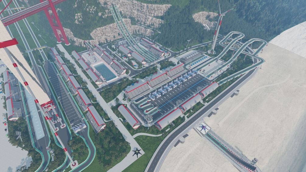 - "Particle accelerator": With a diameter of approx. 6 kilometers and a circumference of almost 18 kilometers, the particle accelerator is ideal for testing the top speed or maximum range of your car. An ambient temperature of -30°C ensures that the motor does not overheat. The details on the tunnel walls have no collision. This isn't a mistake, it's intentional so that you can drive along the walls if you want.